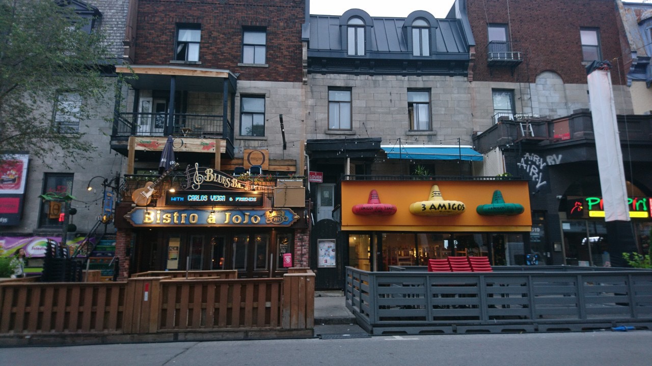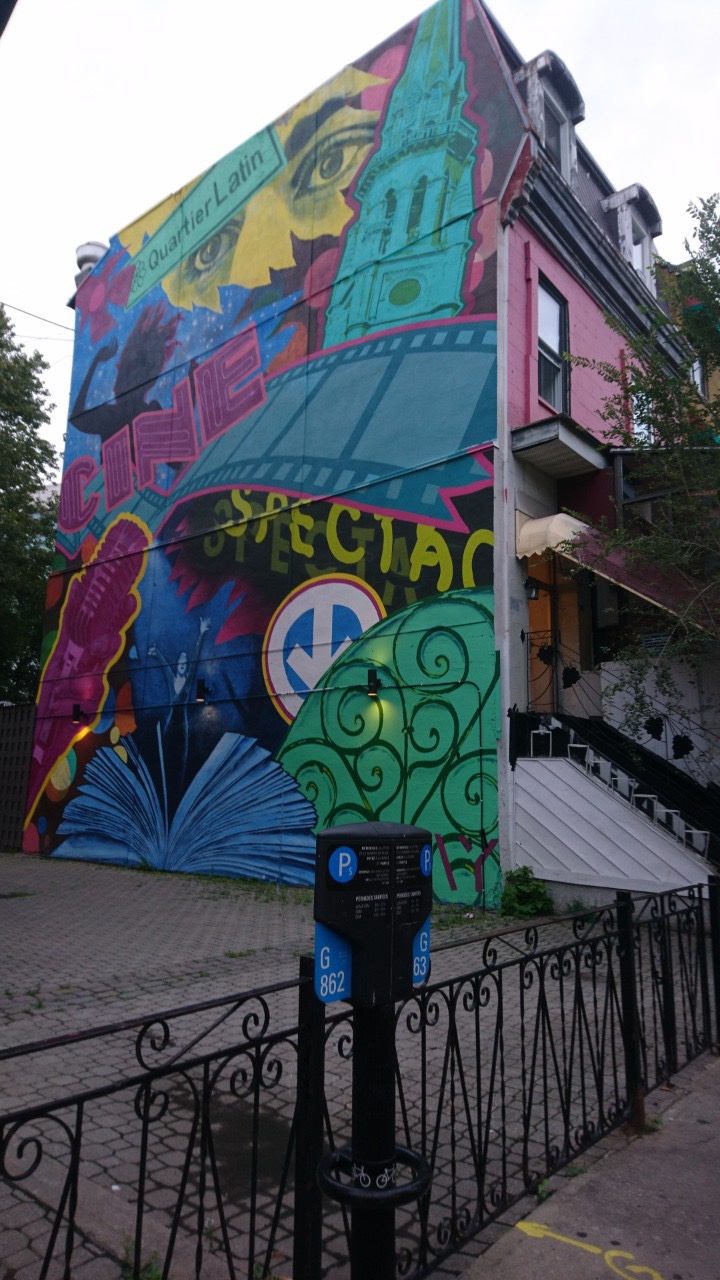 Got our $10 STM all-day pass at the airport vending machine and tthe 747 bus from Montreal-Pierre Elliott Trudeau airport. Got off at Berri-UQAM and walked along Rue Saint-Denis, where a portion of the street was closed to traffic because there was an event earlier that night. It was just past midnight and some bars were still open. Walked past young folks who had a tad bit of a drink, and I remembered my college days. When the world revolved around school and Thursday night parties. Oh those were the days!