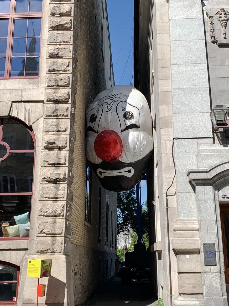 Saw this while walking along Rue Saint-Paul at Quebec City, en route to our late lunch at Cafe du Monde. This was, at first, just eye-catching. And then I realized the clown was sad. Made me think of a couple of songs: