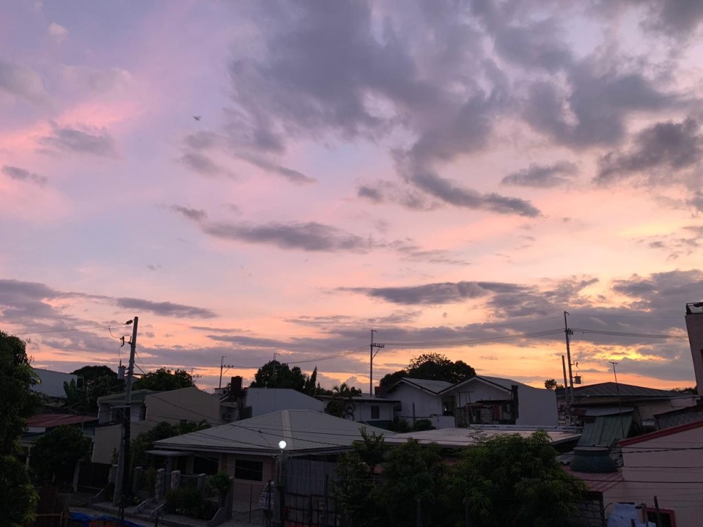 Lastly, this beautiful shot taken by D as he climbed up the water tank. This is my neighborhood skyline – and the splash of colors of the sky af twilight always astounds me.