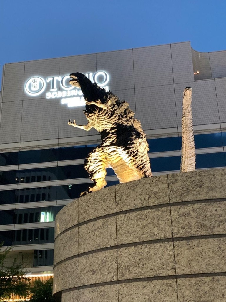 Imagine my surprise when I saw Godzilla peering over from a building in a street in Shinjuku! And then, there’s the Godzilla Statue, a smaller version, near Hibiya Park.