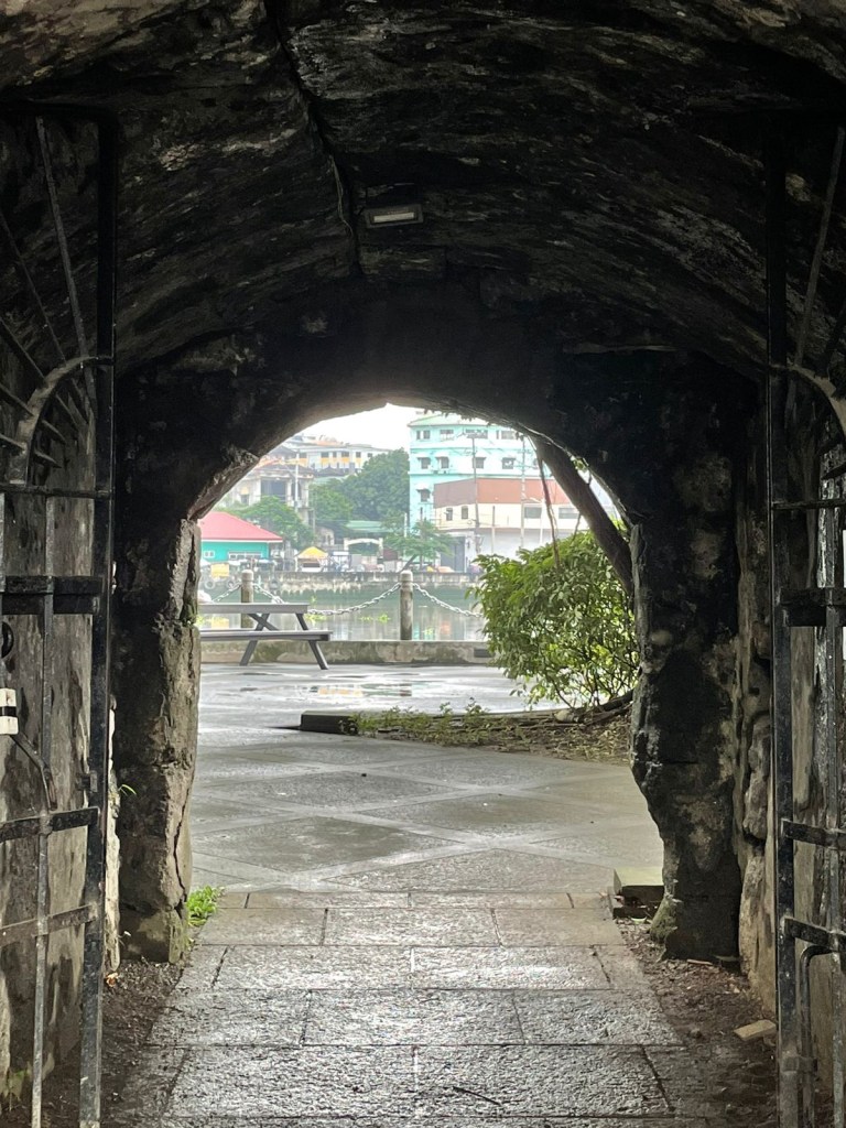 Last rainy Tuesday afternoon, D and I drove to Intramuros, the “walled city of Manila”. Our destination: Fort Santiago. This is the citadel built by the Spanish Governor Miguel Lopez de Legazpi in 1593. It is a famous historic site, as this was where our Philippine National Hero, Dr. Jose Rizal, was imprisoned prior to his execution in 1896. Recently, it had been reopened and tourists are starting to visit it once again. We parked near the Manila Cathedral. En route to Fort Santiago we passed by the Palacio del Gobernador. Luckily, there were only a handful of visitors when we got there.