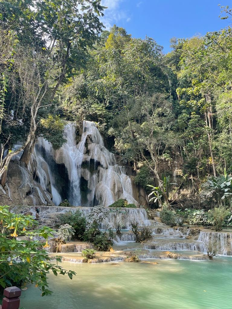 Before getting to the falls we passed through a small town with food stalls and souvenir shops near the entrance. There was also a bear sanctuary a few hundred meters from the falls, the Tat Kuang Si Bear Rescue Center. We saw a few bears lazing around and a couple playing by a pond.