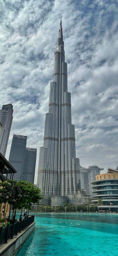 While I imagine I can spend a whole day gazing at the aquarium, D on the other hand spent time admiring the view of the world’s tallest structure from the fountain area.