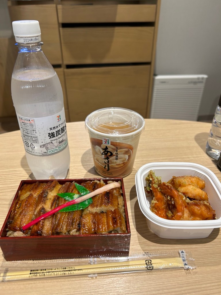 No visit in Japan would be complete without me purchasing food from the konbini (convenience store) and from the basement food halls of department stores. On my first night I decided to get both: clam miso soup from 711, and takeaway bento boxes from Mitsukoshi Ginza. I liked getting food from the department stores because I can customize the portion sizes. I got the smallest portion cut of unagi (eel) and just 100 grams of the honeyed prawns. I think every night before closing time most of the food halls mark down their prices, and I was glad most of their merchandise got sold out.