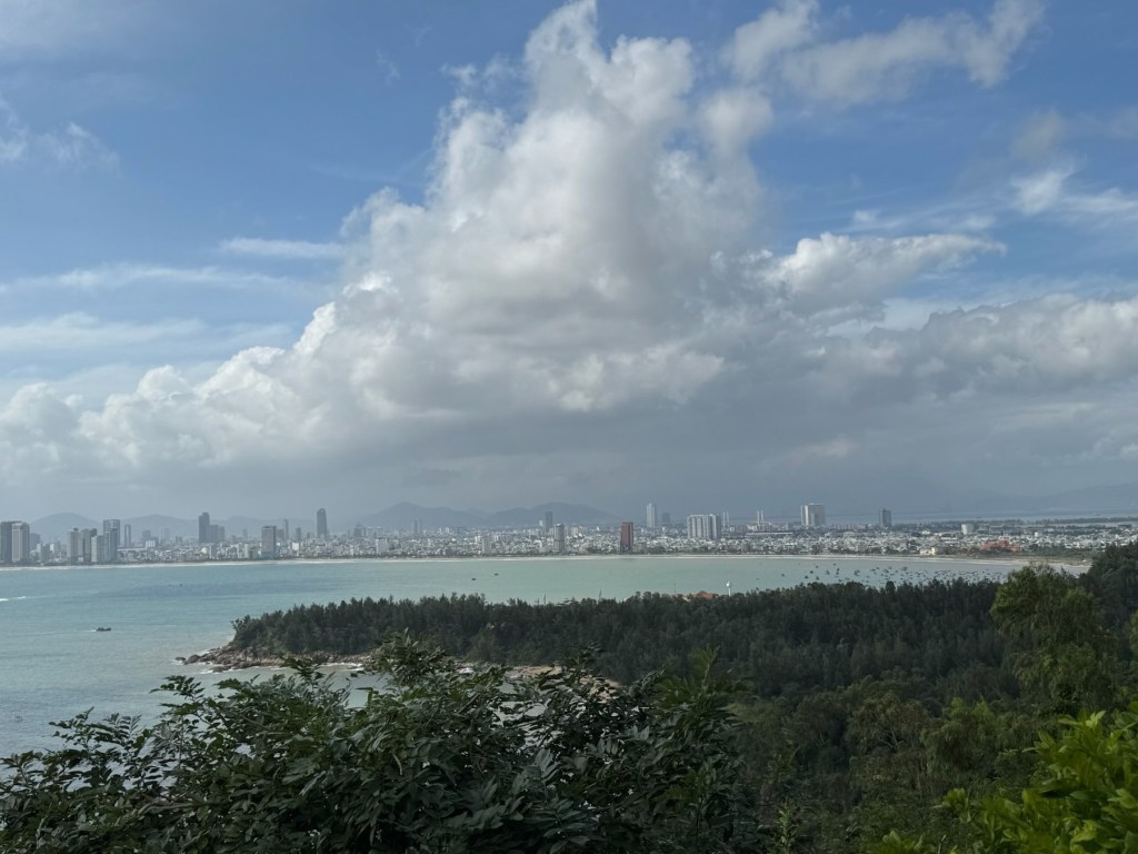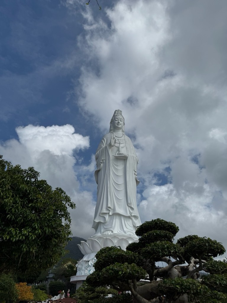 At noon, we drove to the Son Tra Peninsula to the 67-meter-high Guanyin statue, Vietnam’s symbol of protection and peace. The surrounding area had a temple and a garden, where I particularly liked the bonsai trees. There were monkeys out and about, so I left my handbag in the bus and only brought my phone with me. The Da Nang scenery fronting the Guanyin statue was amazing.