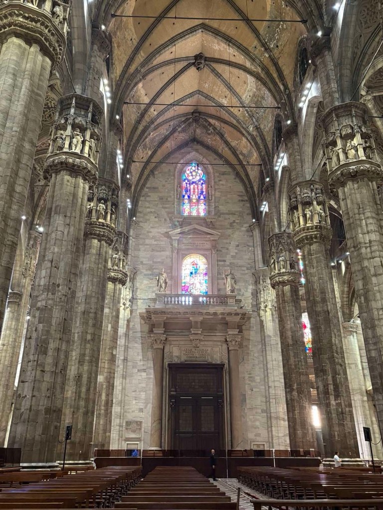 Eager to explore, we headed to the Duomo di Milano for the 5:30 PM Vigil Mass at the High Altar. It was our first time to step inside the Duomo, and it felt surreal seeing its vast interior. We admired its Gothic arches, marble columns and intricate stained-glass windows.