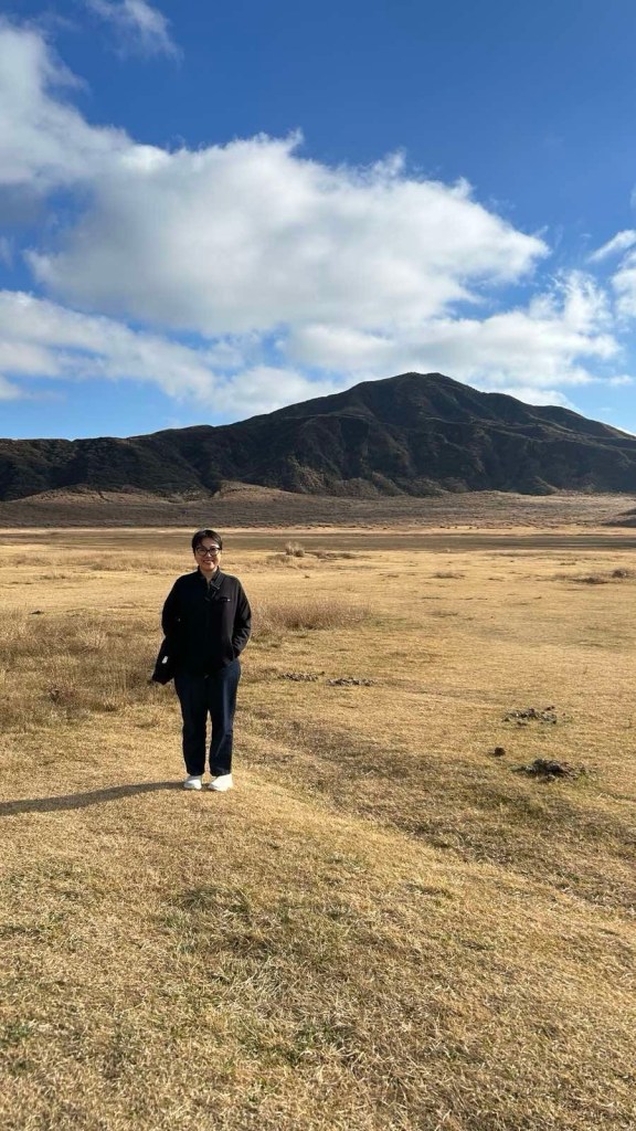After returning to the bus, we headed to our final destination: the grasslands near Mt. Aso. We had a couple of relaxed hours walking around, taking photos, and simply enjoying the open landscape. Near the parking lot were several restaurants and a souvenir shop. D tried Aso beef, known for its rich flavor, while I opted for naan and curry at a neighboring restaurant.