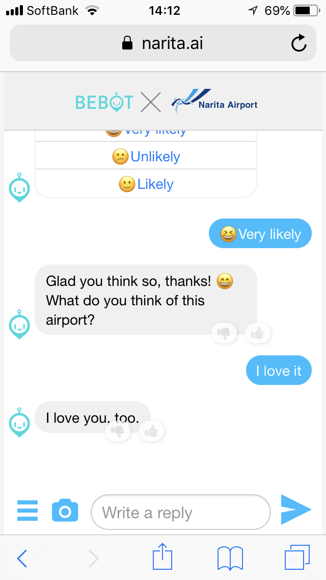 chatbot of Narita named Bebot